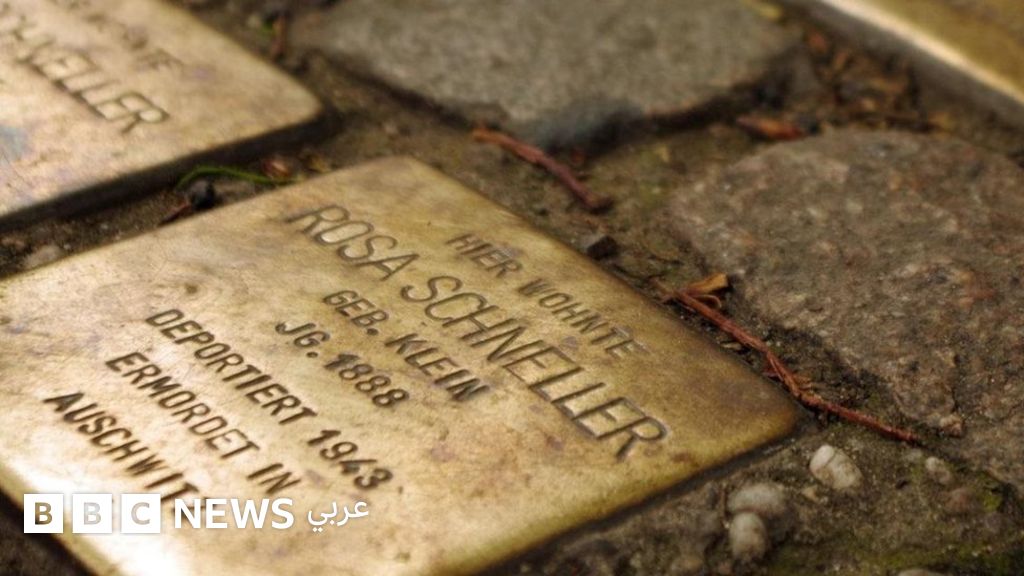 يحفر فريدريك فريدلاندر بيديه منذ 14 عاما مصير كل ضحية من ضحايا المحرقة على لويحات تذكارية معدنية تسمى "ستولبرشتاين"، لا يتعدى قطر الواحدة منها 10 سنتيمترات. وتثبت كل منها على حجر خرساني مكعب يجري تركيبه وسط بلاط الأرصفة أمام آخر مسكن يستدل عليه لضحية المحرقة.
