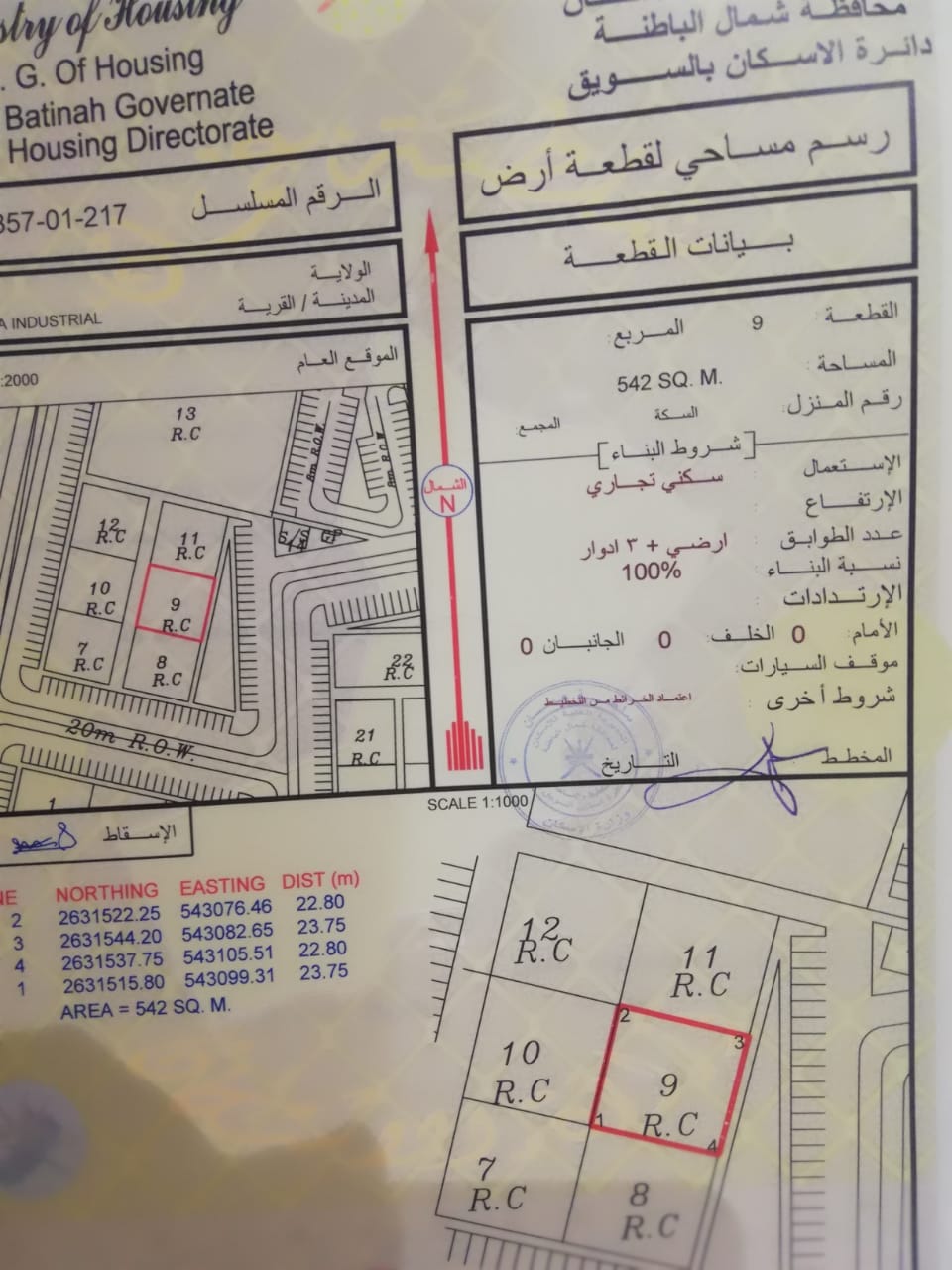 رقم القطعة : 9 / المساحة : 542 متر مربع