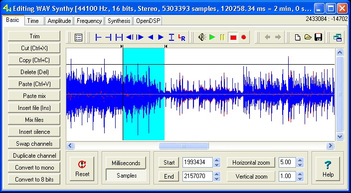 1 Ace WAV v2.6 (لتحرير ومعالجة الملفات الصوتية من نسق WAV) 21 مايو 2002، 13:38 برنامج رائع لتحرير ومعالجة الملفات الصوتية من نسق WAV يحتوي على كل المميزات التي ستحتاجها لعملك. البرنامج حجم البرنامج 2.4 MB نظام التشغيل Windows95,98,ME,NT,2000,XP