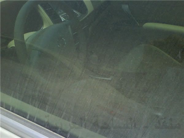 كل السيارات الواقفة كانت جديد. وكانت مغطاة بالغبار وكلها كانت بيضاء اللون. لفت انتباهي وجود خطاف السحب (القلص) في مقدمة السيارة مما يوحي بأنها غير مخصصة للسوق الخليجية. وقد تكون مجهزة لإعادة التصدير لدولة أخرى.