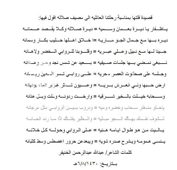 قصيدة للشاعر عبدالله الخنيفر في صلالة