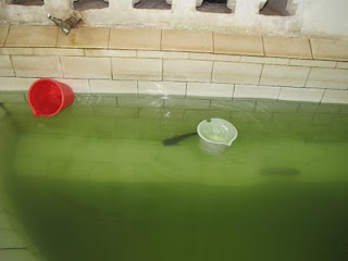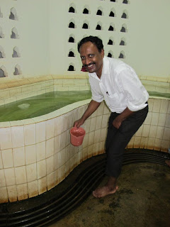 توقفنا أمام مسجد لنصلي المغرب والعشاء، في مكان الوضوء لم أجد حنفيات ماء كالتي أعرفها في مساجد أبوظبي بل حوض كبير يحوي ماء أخضر اللون، بعد التدقيق قليلاً رأيت السمك يمشي فيه! أخبروني أن هذا ماء بئر وأن السمك للتنظيف، للوضوء عليك أن تضع يدك في الحوض وتأخذ الماء ولتغسل رجليك هناك أوعية بلاستيكية، هذا المنظر أعجبني وهناك التقطت أول صورتين: