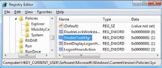 HKEY_CURRENT_USERSoftwareMicrosoftWindowsCurrentVersionPoliciesSystem