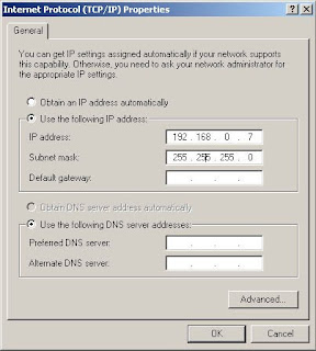 طبعا يمكن تغيير رقم الIP الى رقم شبيه لكن هذا مجرد مثال. الان اضغط مرتين على OK و أعد تشغيل الجهاز ان طلب منك ذلك. اعد نفس العملية مع الجهاز الآخر مع تغيير رقم الايبي الى مثلا 192.168.0.8