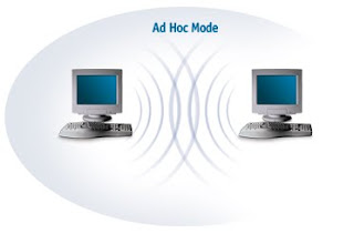 كما ذكرنا سابقاً فان كل كرت عند تشغيله فانه يبحث عن اي نقطة اتصال في مداه كي يتصل بها و هذا الوضع ( اتصال الكمبيوتر بنقطة اتصال) يسمى ب Infrastructure Mode. يمكن ايضاً توصيل جهازين (اللابتوب و الدسكتوب مثلا) مع بعضهما من غير وجود نقطة الاتصال, هذا الوضع يسمى Ad Hoc كما هو مبين في الصورة