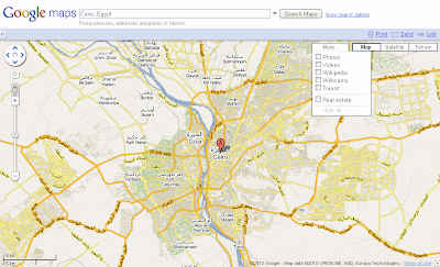 فى اعلى الخريطة من جهة اليمين يوجد عدد من الازرار يمكنك من خلالهم اظهار الخريطة المصورة من خلال الاقمار الصناعية - Satellite او عرض خريطة المناطق والشوارع - Terrain ، كما يمكنك من خلال قائمة More اظهار الصور المتوافرة للمعالم الهامة على الخريطة وكذلك عرض ملفات الفيديو الخاصة ببعض المعالم وايضا معلومات عن الاماكن من خلال موقع Wikipedia الشهير .