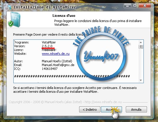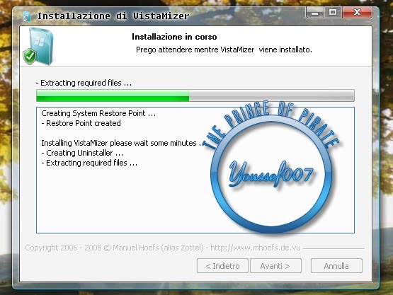 VistaMizer تحويل ويندوز xp الى vista هل يعجبك مظهر فيستا لكن تريد ان تبقى على نسخة ويندوز xp لما لا مع هذا البرنامج تستطيع ان تجعل اكس بي عالمك الخاص بلابس ويندوز vista نعم بواسطة هذا البرنامج تستطيع تغيير شكل ويندوز اكس الى فيستا دون مشاكل بسرعة كبيرة قم بتحميل هذا البرنامج نحو 200 الف شخص والبرنامج حاصد الكثير من جوائز يقوم برنامج Vistamizer بتعديل نظام الملفات الخاص بك حتى عند تركيب هذا البرنامج سوف لن تتذكر واجهة دخول الخاصة بالأكس بي سوف يتم تغييرها بالكامل وكذالك سوف يقوم البرنامج بتغيير سطح المكتب بالكامل مع برنامج vistamizer انت الأن قادر على تحويل ويندوز اكس بي الخاص بك الى ويندوز vista ويدعم البرنامج الأنظمة التالية XP, MCE or Server 2003 يمكنك تغيير مظهرها بالكامل وبرنامج vistamizer له ميزة يعمل مع كل لغات ولايقوم في اي تغييرات باللغة ومن أهم مميزات البرنامج : مظهر جديد بنكهة Vista لأنظمة تشغيل Windows XP, MCE or Server 2003, يقوم البرنامج بتعديل نظام الخاص بالملفات, يدعم البرنامج تعدد اللغات multilingual, يقوم البرنامج بفحص الملفات لتأكد من توافقه أثناء التثبيت, يقوم بأنشاء نقطة أستعادة النظام برنامج مميز ومجاني يستحق التجربة والتحميل
