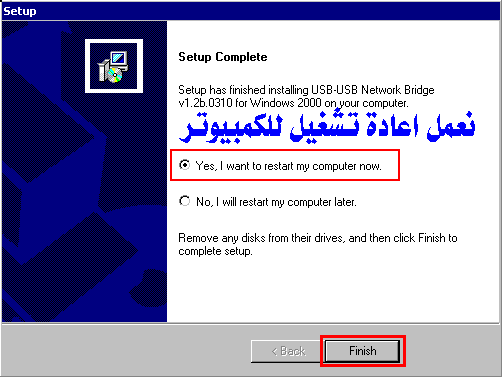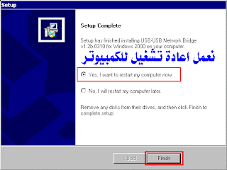 وبعد إعادة تشغيل الكمبيوتر والدخول الكامل على الويندوز اكس بي ،، يتم وضع الوصلة في المنفذ الخاص لها ،، ثم تأتي الشاشة التلقائية التالية، لتدل على إتمام عملية تعريف الوصلة بشكل نهائي وتام .وفي حالة لم يكن التعريف على شكل ملف تنفيذي ،، فإنه يتم وضع الوصلة أولاً في المنفذ الخاص ،، ثم تأتي شاشة تطلب إكمال التعريف كما يلي :-