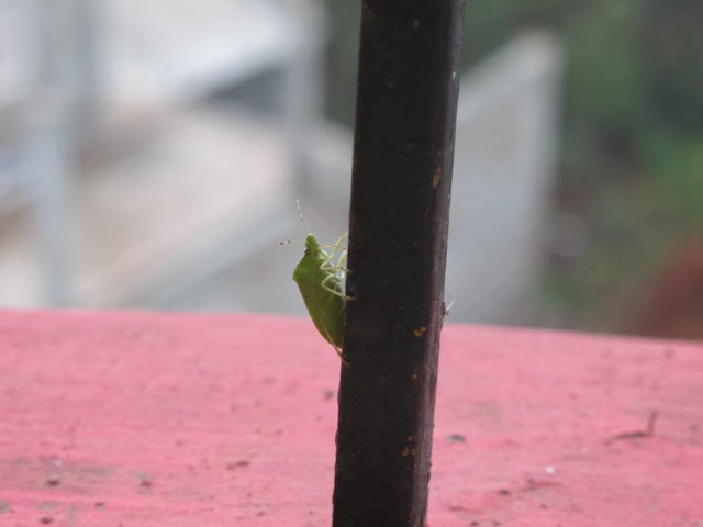 كانت تشاركني الشرفة، حشرة غريبة الشكل وخضراء جداً