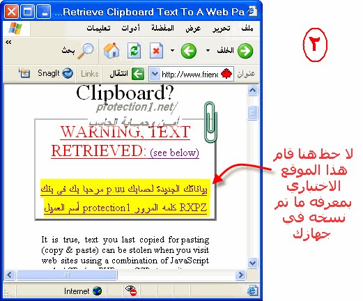 عندما تقوم بنسخ أو لصق معلومات أو بيانات أو أي شي مكتوب على جهازك وأنت متصل بالانترنت تأكد أنه بإمكان الغير من هاكر أو متطفلين معرفه ماقمت بنسخه حتى قبل اللصق.