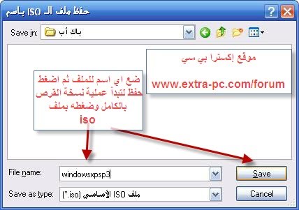 الآن سيطلب منك حفظ ملف الايزو اختر مكان حفظ مناسب لديك على الهارديسك