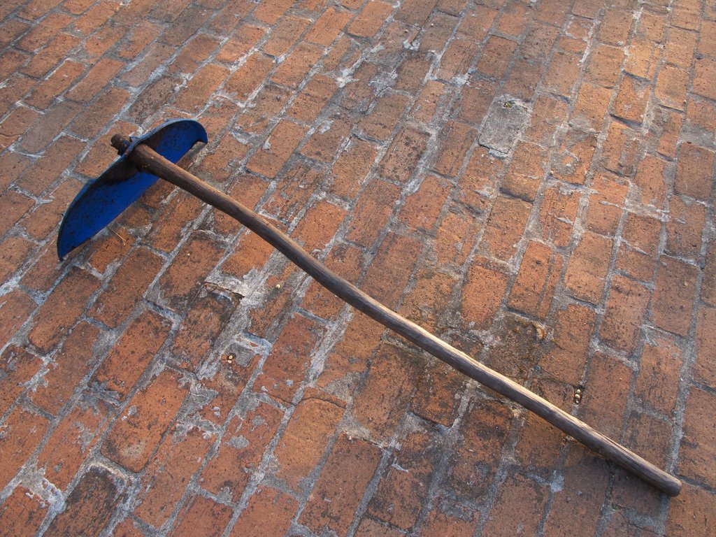 هذا مثال لاستغلال كل شيء في الهند، هذا جاروف صنع من عصا والرأس أخذ من صندوق بلاستيكي، يستخدم لبسط حبوب القهوة وجمعها