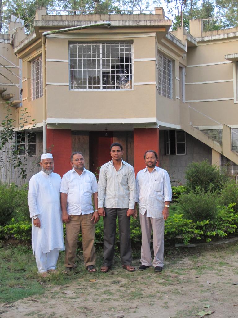 زملاء الرحلة وخلفهم بيت المزرعة، على اليمين حسن ثم محمد ابن داوود، ثم الرجل الذي نسيت اسمه وهو أخو حسن ثم بالطبع داوود.