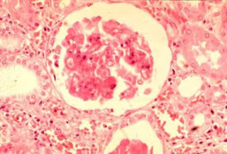 تأثر الكلي - - والذي يظهر لدى أغلبية المرضى وهو أحد العوامل الرئيسية المحددة للنتائج المستقبلية لهذا المرض، أما الأعراض الأكثر شيوعاً بسبب تأثر الكلي فتشمل ارتفاع ضغط الدم، وجود الدم في البول وانتفاخات في الأقدام والساقين وحول العينين .
