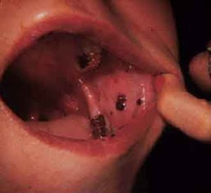 وهي تقرحات صغيرة تظهر في الفم والأنف وتكون عادة بلا ألم, لكن تقرحات الأنف قد تسبب نزفاً