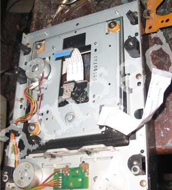 ومثلا فى هذه البورده الاى سى رقم واحدخاص بالموتور ورقم اتنين خاص العدسه و عند خلع الكبلات ستجد كبل متصل بموتور اللى بيحرك الاسطوانه والتانى متصل بالعدسه ( الكبل الموجود صورته بالأعلى