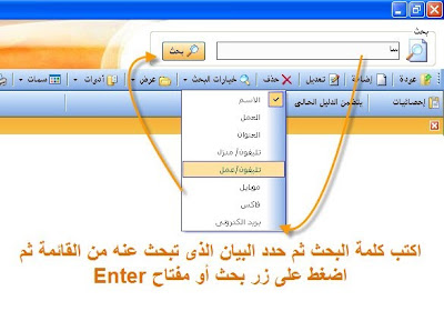 6- تطوير نظام البحث بشكل كلى حتى يمكنك البحث عن جميع البيانات المسجلة فى سجل البيانات , ليس هذا فحسب بل يمكنك البحث عن بيانات شخص حتى لو كنت لا تعرفها جيدا أو غير متأكد منها , وذلك بأن تدخل جزء منها ولو حرف واحد أو حرفين أو ثلاثة حروف متتالية وسوف يسرد البرنامج جميع البيانات التي تتضمن هذه الأحرف