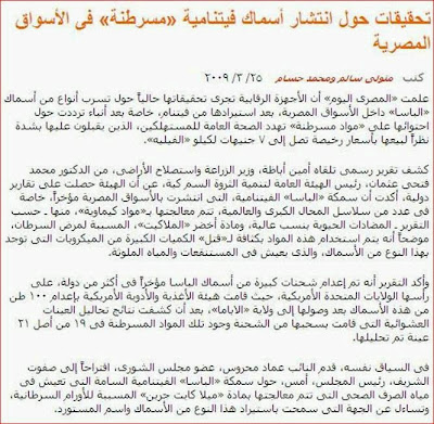 وبعد إجرائهم للتحاليل المخبرية، أرشدهم الخبراء الفرنسيين على كيفية معالجة هذه الأسماك الموبؤة بكثير من أنواع الميكروبات (من المستنقعات والمجارير التي تعيش فيها) بمواد كيماوية قوية: الملاكيت غرين Malachite Green وغيرها، لقتل الميكروبات الموجودة فيها. والمعروف عالمياً أن الملاكايت غرين هي مادة مُسرطِنة قوية جداً (إذا لا تُصدّق، إبحث عنها في جوجل).