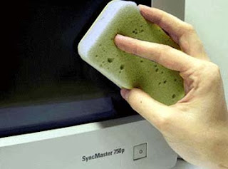 بواسطة قطعة قماش أو منشفة ورقية قم بفرك جسم الشاشةخاصة أعلى الشاشة التي عادة هو أكثر اتساخ .