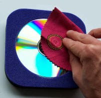 أفضل طريقة للتنظيف قرصك المدمج هو بتنظيفه بواسطة قماش ناعم بطريقة خطوط منتظمة من داخل الدائرة الى خارجها .