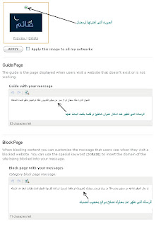 فى جانب الـ Customization يمكنك تحديد شكل رسالة الحظر من حيث النص الذى سيظهر والصورة المعروضة…
