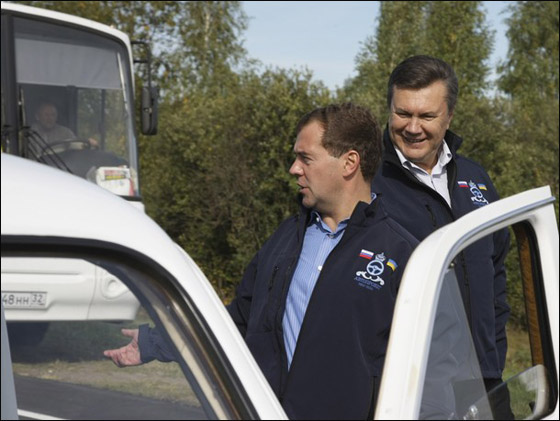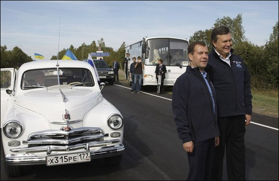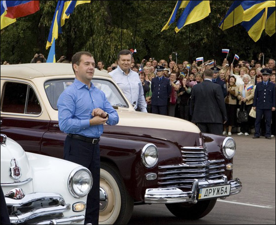 التقى الرئيسان الروسي ديمتري مدفيديف والأوكراني فيكتور يانكوفيك لقاء بعيد عن السياسة وأقاما سباق ودي اعتبراه رمزاً للصداقة طويلة الأمد بين البلدين، حيث قاد كل منهما سيارتين قديمتين وتسابقوا.