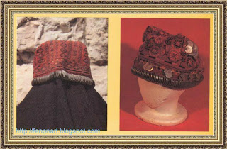 صفة)مطرزه بشكل كامل بخيوط الحرير الاحمر , هذه الطبقه القطنيه مزينه بعقال ابيض وصفه قطع نقديه , الطاقيه تعتبر من مهر الفتاه وكانت تلبسها يوم عرسها وبعد ذلك بصوره مستمره.