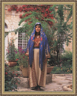 ازياء العروس التقليديه فى منطقه رام الله معروفه بتطريزها الاحمر فوق القماش الابيض والاسود المشغول باليد .
