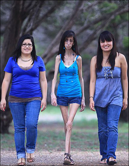 من اغرب الصور التي شاهدتها حتى الان صور هاته الفتاة التي تدعى ليزي فيلازكويز طالبة الاتصالات في جامعة أوستن بتكساس وزنها لايتجاوز 25 كلو غرام بسبب فقدان جسمها الدهون نتيجة لمرض لم يتمكن الاطباء من اكشافه الى الان تتناول اكثر من ست وجبات يوميا اي مايعادل 5 آلاف إلى 8 آلاف سعره حرارية ومابين 15او20 دقيقة للحفاظ على استقرار صحتها .الصور غريبة جدا