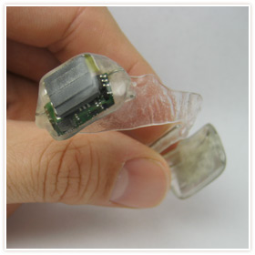 هو جهاز صغير يوضع على الضرس الداخلي العلوي للفم من جهة اليمن أو اليسار, حيث يعمل على تمرير الصوت الخارجي عبر الاسنان ومن ثم عظمة الفم الى الأذن الداخلية, حيث يتم سماع الأصوات الخارجية وبكل وضوح عن طريق التذبذبات الصوتية التى تنتقل للأذن الداخلية دون الحاجة بلمرور عن طريق الأذن الخارجية والوسطى.