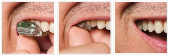 العضة السمعية من السهل تركيبها وتثبيتها على الضرس ومن ثم ازالتها بأي وقت, كمى يوجد معها جزء خارجي يوضوع خلف الأذن لألتقاط الاصوات وارسالها الى العضة السمعية.