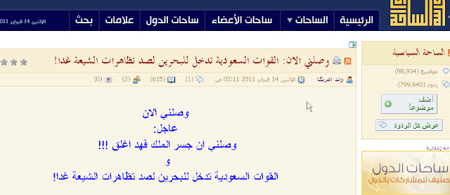عاجل ورد في منتديات الساحة العربية السياسية: