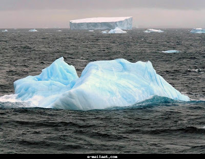 والجبال الجليدية هي كتل ضخمة من الجليد، انفصلت عن أطراف إحدى المثالج، ثم انسلت إلى مياه المحيط. وتتكون من مياه عذبة متجمدة. وغالبًا ما تحمل الجبال الجليدية ولمسافات طويلة أحجارًا ضخمة، وكميات من الحصى جلبتها من المنشأ على اليابسة، وعندما يذوب الجبل الجليدي تستقر هذه الحمولة في قاع البحر. وتمثل هذه الظاهرة مع الضباب أكبر خطر طبيعي على السفن... فسبحان الله الخالق .... أكمل بقية الصور ...