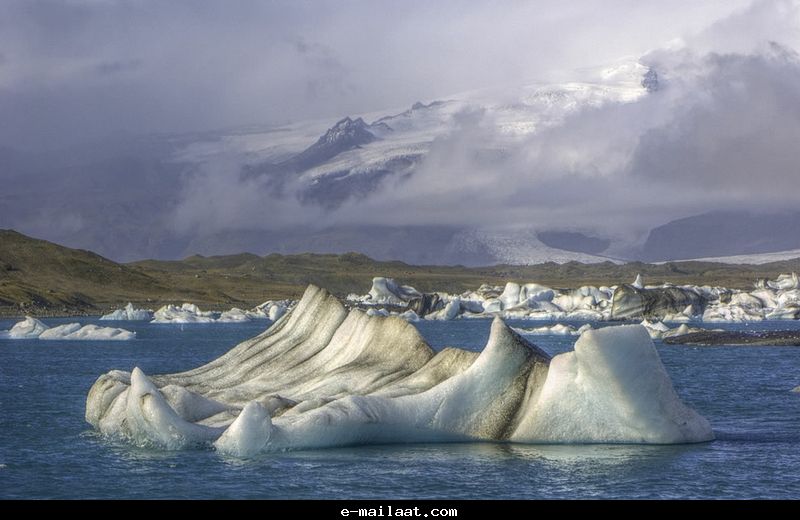 والجبال الجليدية هي كتل ضخمة من الجليد، انفصلت عن أطراف إحدى المثالج، ثم انسلت إلى مياه المحيط. وتتكون من مياه عذبة متجمدة. وغالبًا ما تحمل الجبال الجليدية ولمسافات طويلة أحجارًا ضخمة، وكميات من الحصى جلبتها من المنشأ على اليابسة، وعندما يذوب الجبل الجليدي تستقر هذه الحمولة في قاع البحر. وتمثل هذه الظاهرة مع الضباب أكبر خطر طبيعي على السفن... فسبحان الله الخالق .... أكمل بقية الصور ...