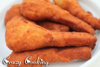 نحاول أن نغلقها بأطراف الاصابع حتى تأخذ شكل فخذ الدجاج ثم تغمس بالبيض وفتات الخبز