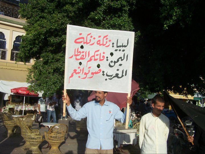 ان حركة 20 فبراير تؤكد مرة اخرى انها ستبقى وفية وصامدة الى جانب الشعب المغربي حتى تحقيق الحرية والكرامة والعدالة الاجتماعية . ومتواجدة من خلال مسيرات شعبية احتجاجا على اصرار المخزن على الاستبداد والقمع الممنهج والفساد المكشوف ، وترهيب وتخويف المواطنين واستغلال فقرهم في الحملات الانتخابية ونؤكد مرة اخرى أن (التضامن مع الفقراء والمحتاجين ليس فقط في شهر رمضان او خلال الانتخابات المواطن له الحق في العيش الكريم دون ان يمد يده ، له االحق في ثروات البلاد الطبيعية والتاريخية ) ( باش ابقى ديما المواطن الفقير اتسناهم ويمد ايديه باش يبقاو ديما هما المتحكمين فيه اديرو بيه اللي بغاو )