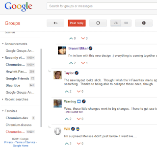مجموعات جوجل هي آخر خدمة من خدمات جوجل تمت اعادة تصميمها لتتناسب مع التصميم الجديد والذي تزامن مع اصدار شبكة جوجل الاجتماعية جوجل بلص
