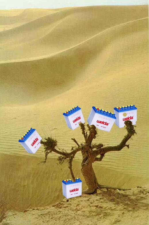 4-ادفن البطاريه بالرمل بشكل كامل كما هو مبين بالصوره