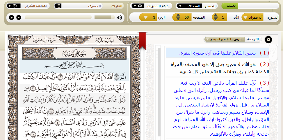 [h=1]مشــروع القـرآن الكريــم[/h]المشروع هو محاكاة الكترونية للمصحف الشريف مع هامش للترجمة المباشرة لاثنتين وعشرين لغة وأربعة تفاسير وخدمة تلاوة بصوت العديد من مشاهير القراء وإمكانية التكرار لتيسير الحفظ على الأطفال والمكفوفين خاصة