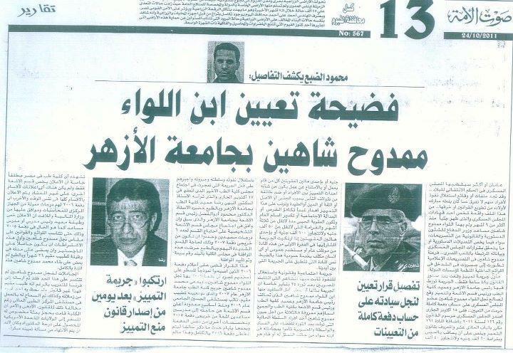 نجل اللواء ممدوح شاهين دفعة 2007 كليه طب جامعة الأزهر تعدوا تعين دفعة 2006 وتم تعين ابن اللواء دفعة 2007