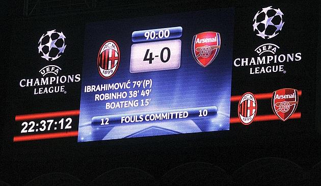 { شبكة الميلان العربية } : صعق فريق الميلان نظيره الآرسنال في مُبارة ذهاب دور الـ 16 من دوري الأبطال برُباعية نظيفة .. في