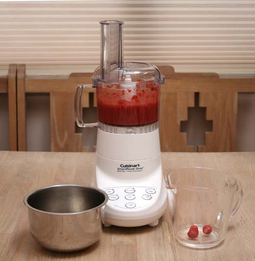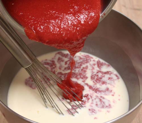 1- نضع حبات الفراولة في الخلاط ونخلط جيدا الى ان تنسجم جيدا