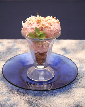 ثم يقدم بعد تبريده يقدم مع حباة الشكولاته ويزين الوجه بالجوز الهند المحمص