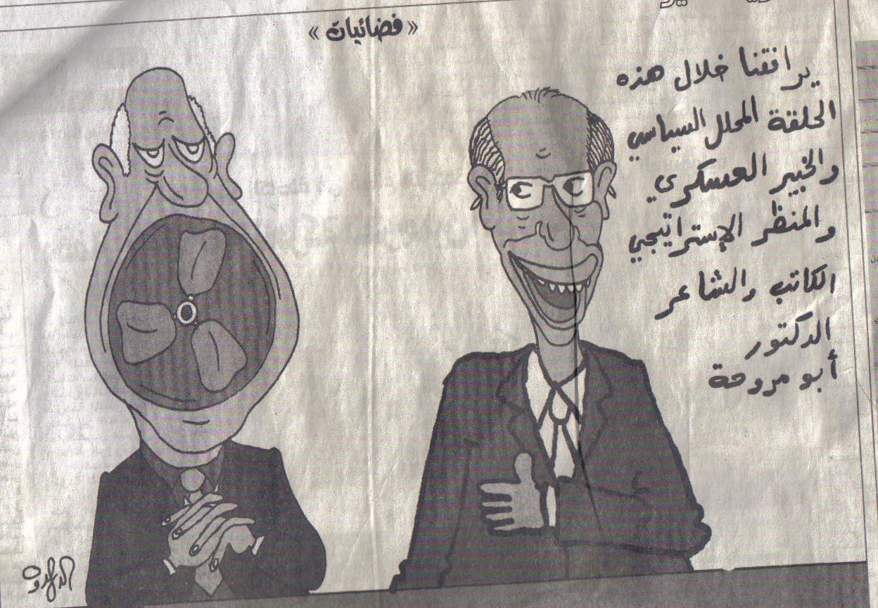 ابو مروحة يعرف كل شيء ويتحث عن كل شيء بدون توقف فهو شاعر وكاتب وايظا خبير عسكري وفي نفس الوقت محلل سياسي