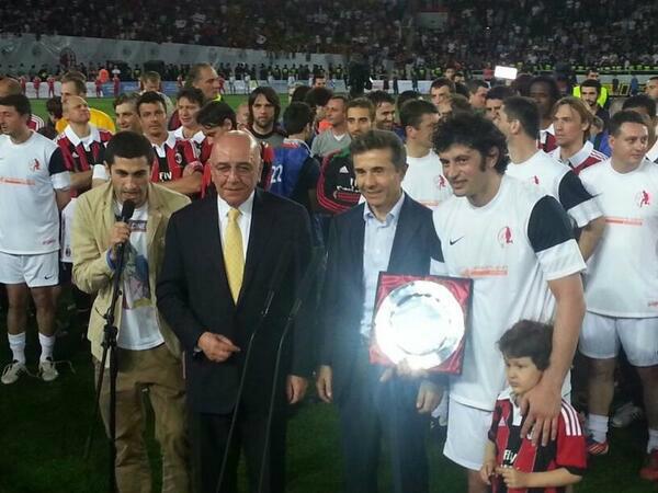 كالادزه لعب الشوط الاول بقميص ميلان وحمل شارته الكابتن وفي الشوط الثاني لعب مع فريق اصدقائه ..