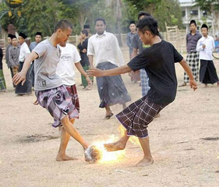 رغم ظهور العديد من الرياضات فإن كرة القدم تظل من أكثر ألعاب شعبية في العالم، وفي إندونيسيا قرر الطلبة إضافة قاعدة خاصة بهم وهي استخدام كرة قدم مشتعلة.