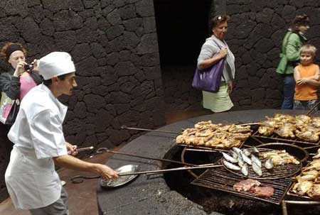 طريق شوي وطبخ المأكولات التي يقدمها المطعم على الحرارة التي تصدرها فوهة بركانية