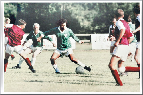 [B]خلال حفل الاستقبال، فاجأ الجميع خليفة سعيد سليمان المدير العام لدائرة التشريفات والضيافة، بالكشف عن صورة قديمة يظهر فيها صاحب السمو الشيخ محمد بن راشد وهو يلعب مباراة في كرة القدم مع أحد الفرق الإنجليزية، وفي الحال بادر سموه إلى تقديم الصورة هدية إلى إسماعيل مطر كابتن المنتخب بعد أن دعا عمر عبدالرحمن وبقية اللاعبين إلى مشاهدتها، وقال سموه معقباً إنه سجل هدفاً في تلك المباراة عندما تلقى الكرة وهو في مواجهة المرمى .[/B][B]"مفاجأة الحفل" صورة نادرة لمحمد بن راشد كلاعب كرة[/B]