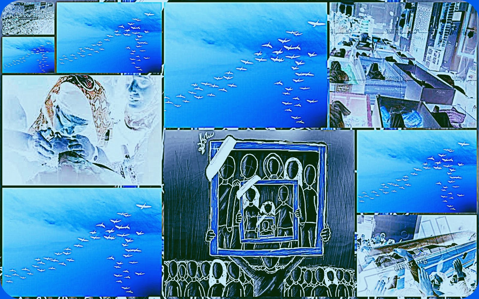 فتحت الصناديق وقفزت الجثث ، حلقت ، طارت ، رفرفت الارواح فوق المشهد كله ، بسرعه اصطفوا بنظام كرؤوس الرماح وكأنهم سرب سمان عائد من الارض الصقيع لبلاد الدفء ، بسرعه حلقوا فوق المشهد وادركوا ببصيرتهم كل تفاصيله ، رسموا طبوغرافيا للمشهد وتفاصيله ، يمينه ويساره ، نهار خارجي يمين ، مشيعين طيبين يمين ، قناصه اولاد ابالسه مجرمين يمين ، جنازة مهيبة وخمسون نعش يمين ، سباب شتم صراخ دوي رصاص هتافات غاضبه وعيد بالانتقام ، كلمات خلف الكلمات اصوات متداخله الشعب يريد اسقاط النظام شمال يعلن ابوكم ولاد كلب شمال ، ياخونه ربنا ينتقم منكم شمال ، يانموت زيهم يانجيب حقهم شمال ، شمس دافئه تعلو المشهد وتزيح السحب الرماديه يمين ، جري وبعثرة ، يمين ، فرده شبشب مقلوبه يمين ، سيدة تجري وابنتها في كفها هرعه يمين ، صوت الطفله يصرخ ماما ياماما ماما ياماما شمال ، سرب السمان المحلق في السماء كروؤس الرماح يعلو المشهد كله ويكشفه برداراته ، يراه كله ، الصناديق تمنت تفر بالاجساد المسجاه بداخلها يمين ، الاجساد حلقت فوق ساحه القتال يمين ، حي علي مصر حي علي مصر شمال ، صوت رصاص يدوي عاليا شمال، خنجر صغير يدسه احد المشيعين في خاصره جاره الذي تصوره حزينا مثله يمين ...
