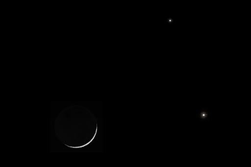 وسيكون تحديد مواقع هذه الأجرام في غاية السهولة حيث يظهر هلال القمر المضاء بنشبة 3.5 في المائة وبالقرب منه سوف يكون جرم ساطع ذلك هو كوكب الزهرة وفوق الزهرة يقع عطارد ، وجميعها سوف تشكل منظرا يستحق المتابعة.